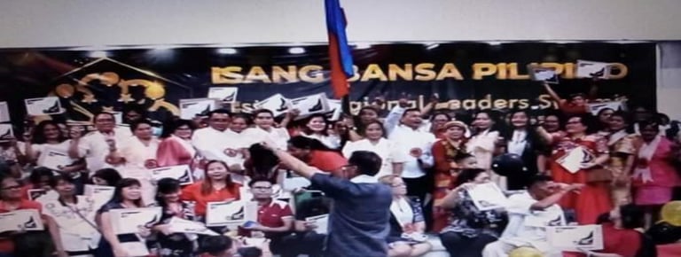 Dahil kami ang Isang Bansa Pilipino, inilaan ang kilos at damdamin para tulungan at pagkaisahin ang mga Pilipino. Ang aming dakilang adhikain at siya din aming sandalan at kalakasan, ito ang pagkakaisa. Pagkabuklod-buklod at maunlad na buhay ang aming pangarap sa lahat. Kami ang daluyan ng boses, pag-asa, pagkapantay-pantay, pagdamay, pagkalinga, pakiki-isa at pag-ibig sa kapwa Pilipino.”